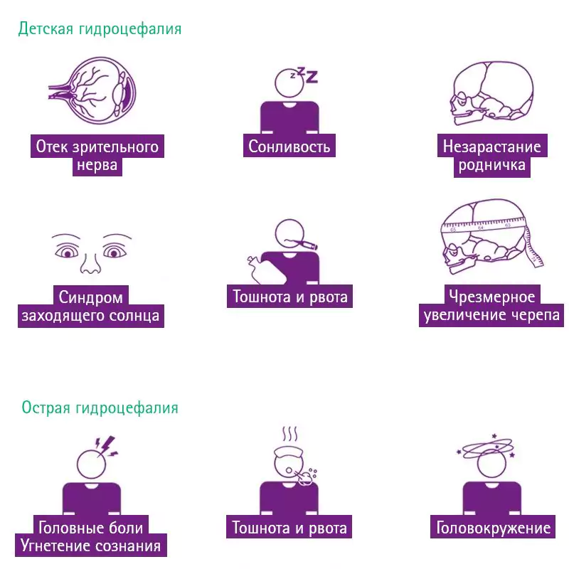 Симптомы гидроцефалии меняются с возрастом пациента, кроме того, другие заболевания могут оказывать влияние на эти симптомы.