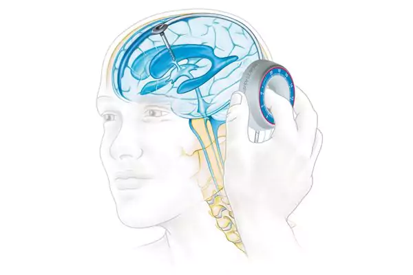 Наиболее распространенная операция представляет собой имплантацию шунтирующей системы, позволяющей избыток ЦСЖ выводить через тонкую силиконовую трубку из мозга в другую часть тела, обычно в брюшную полость. Отсюда жидкость всасывается в кровь. Шунт состоит из катетера и клапана для контроля скорости оттока ЦСЖ и для обеспечения нормального давления в головном мозге.