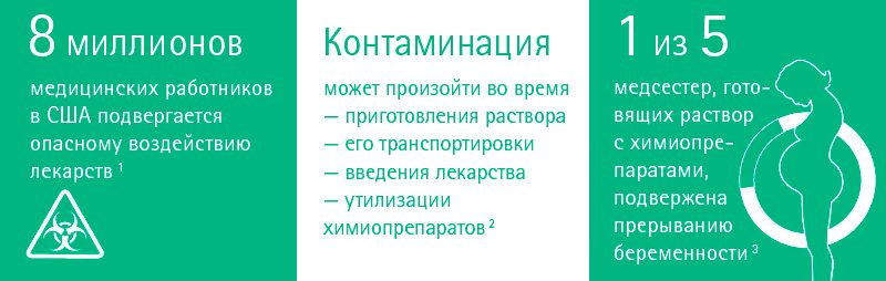 • Применение лабораторных вытяжных шкафов или специально оборудованных помещений для приготовления и смешивания химиопрепаратов позволяет избежать химического загрязнения 19.