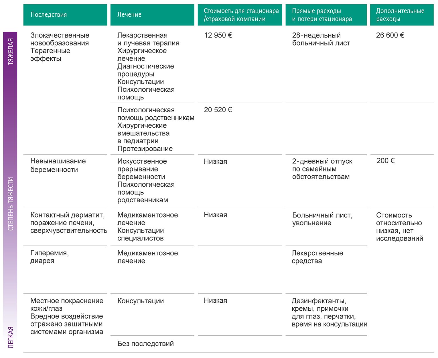 Табл. 2. Анализ возможных затрат на лечение осложнений, связанных с химическим загрязнением [22–26].