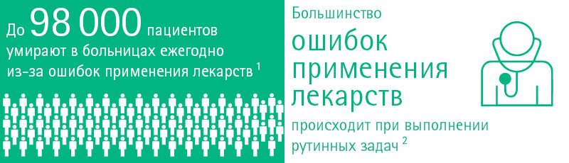Ошибки применения парентеральных препаратов — серьезная проблема для отделений интенсивной терапии, ее решение признано высокоприоритетной задачей для системы здравоохранения во всем мире 1, 2, 5. Было доказано, что ошибки связаны с дополнительной заболеваемостью и смертностью среди и без того тяжелобольных пациентов 3, 4.