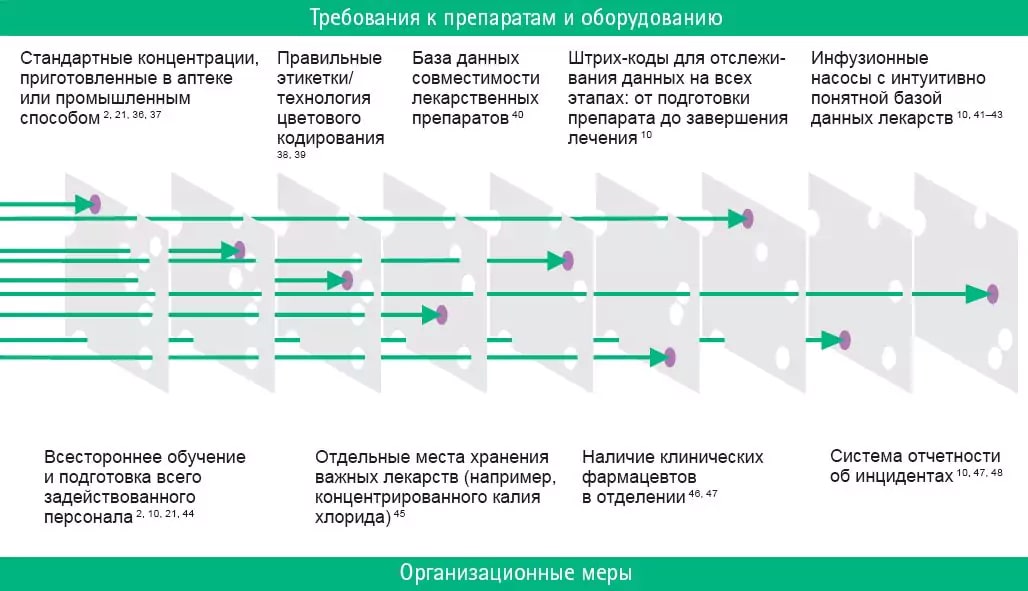 Чем больше последовательных проверок безопасности внедряется, тем безопаснее становится вся система. Некоторые конкретные профилактические стратегии для реализации в клинической практике показаны на рисунке ниже.