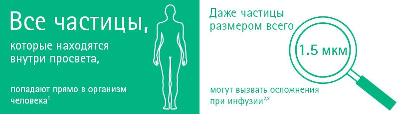 Загрязнение твердыми частицами пластика, стекла, резины во время инфузии или инъекции становится причиной серьезных осложнений для пациента, что приводит к возрастанию стоимости лечения и увеличению сроков пребывания в стационаре.