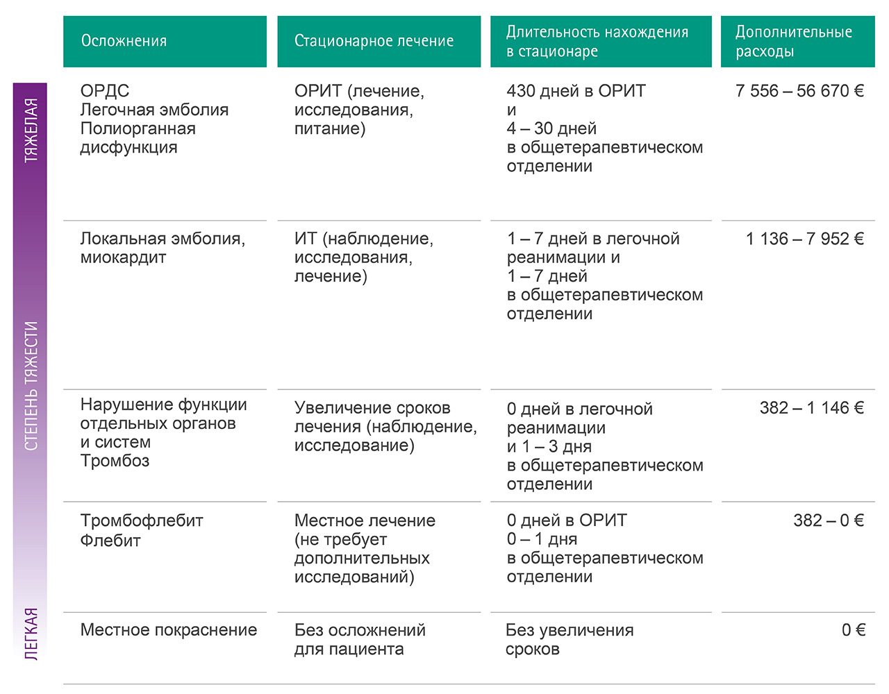 Данные, приведенные в таблице (рис. 2), демонстрируют результаты подсчета расходов для лечения осложнений, связанных с попаданием твердых частиц в кровоток пациента.