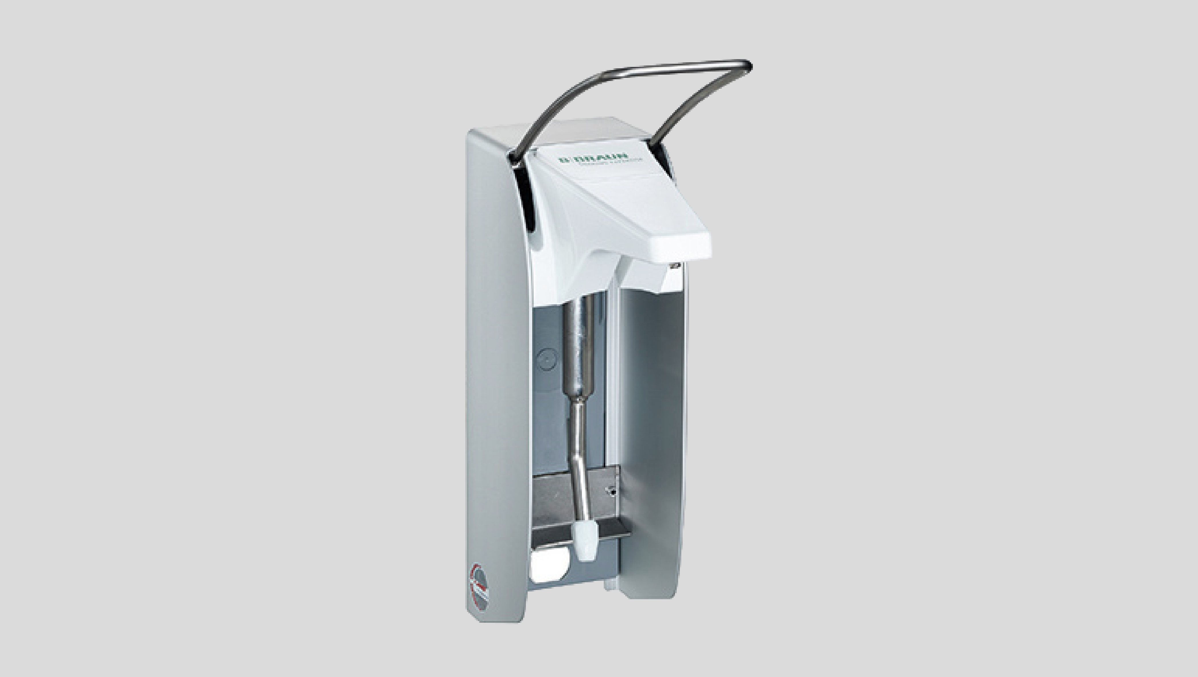 Настенный дозатор 1000 мл, корпус выполнен из анодированного алюминия, длинный или короткий рычаг и помпа из нержавеющей стали. Помповое устройство легко извлекается из корпуса дозатора. Дезинфекция помпового устройства может проводиться с помощью дез. средств или автоклавирования.