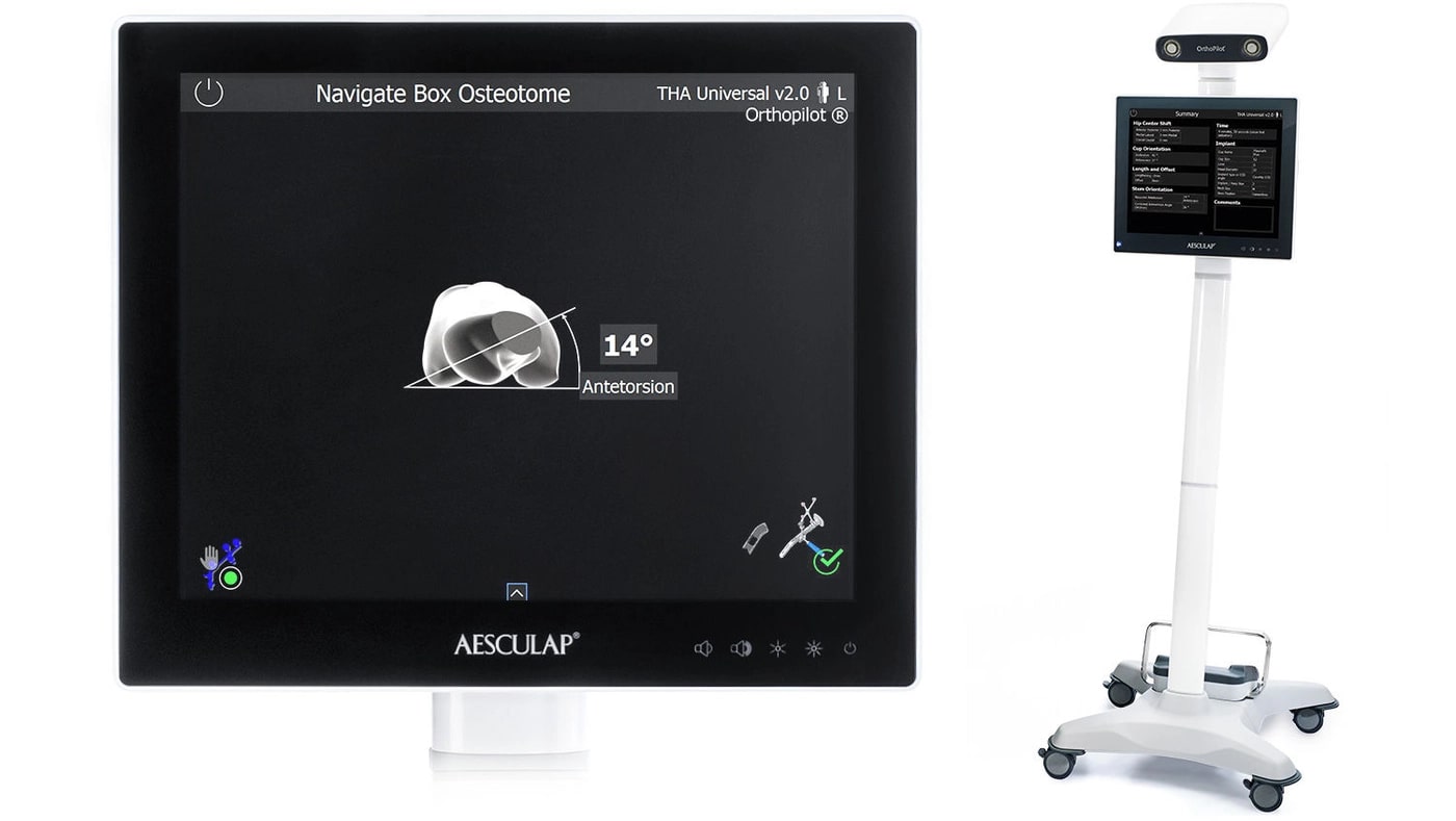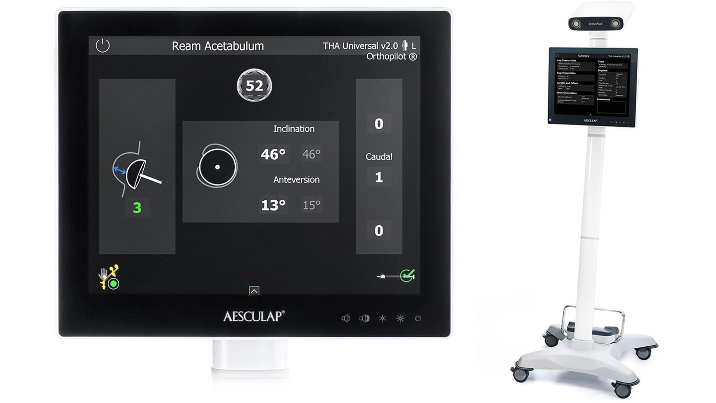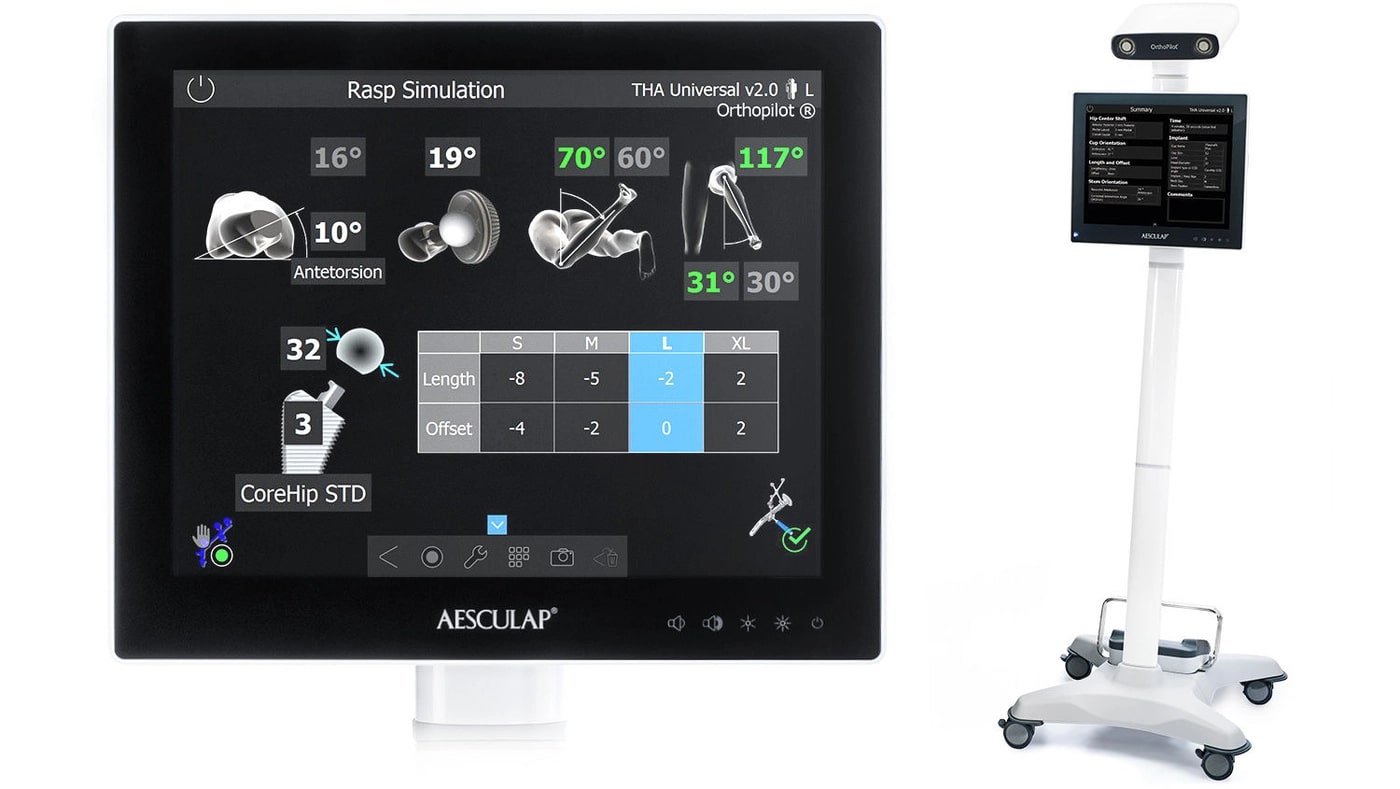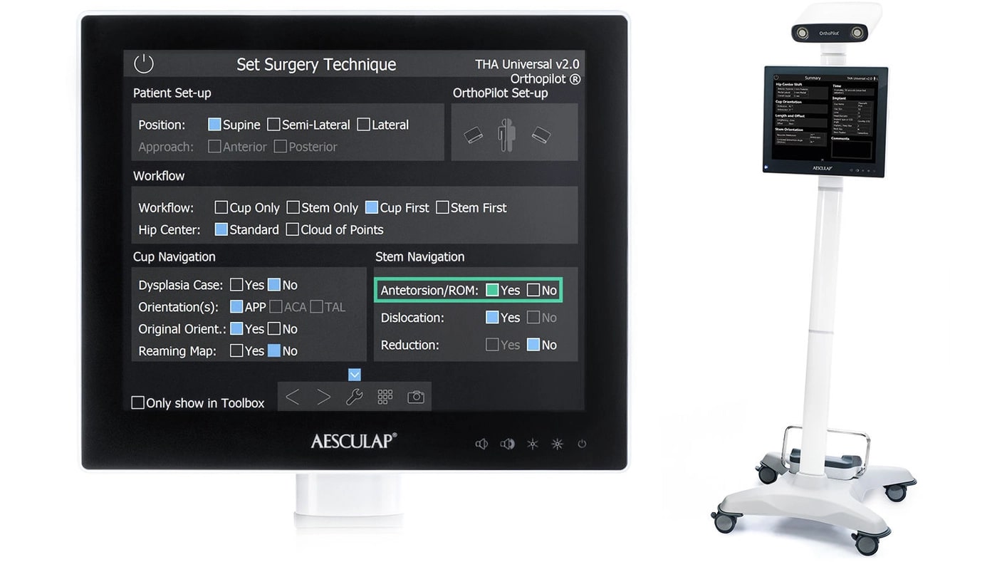 THA Pro обеспечивает максимальную функциональность. Помимо положения и ориентации чашки, отслеживаются все соответствующие параметры ножки: изменение длины ноги, смещение и торсия имплантата, а также результирующий диапазон движения (ROM) в суставе в зависимости от ориентации чашки. Результаты имплантации можно смоделировать — до того, как будут зафиксированы компоненты. Фиксация инструмента на большом вертеле дает вышеописанные преимущества.